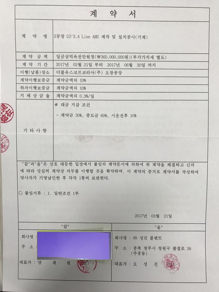 "축" 3공장 CO3,4 Line AHU제작및 설치공사