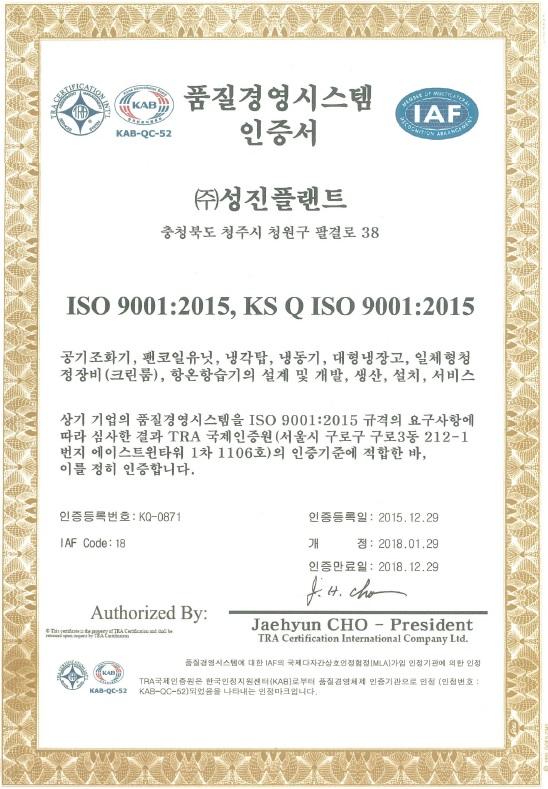 품질경영시스템 인증서 (ISO 9001:2015, KS Q ISO 9001:2015)